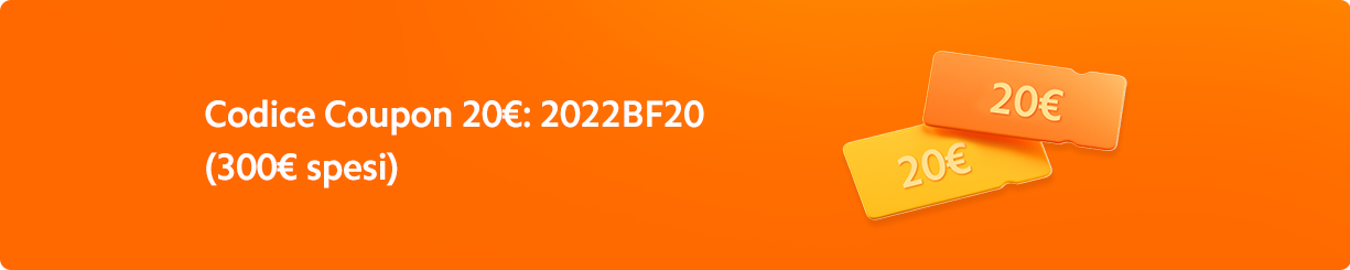 Codice Coupon 20€: 2022BF20 (300€ spesi)